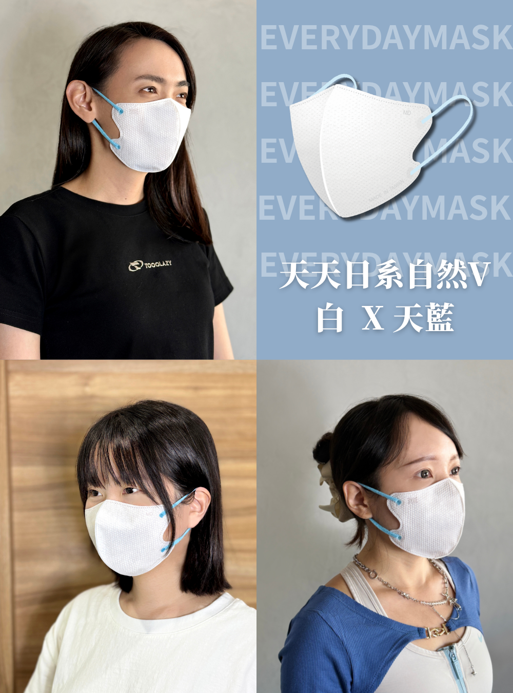 【天天】自然V日系立體(白 X 天藍)-30入/盒