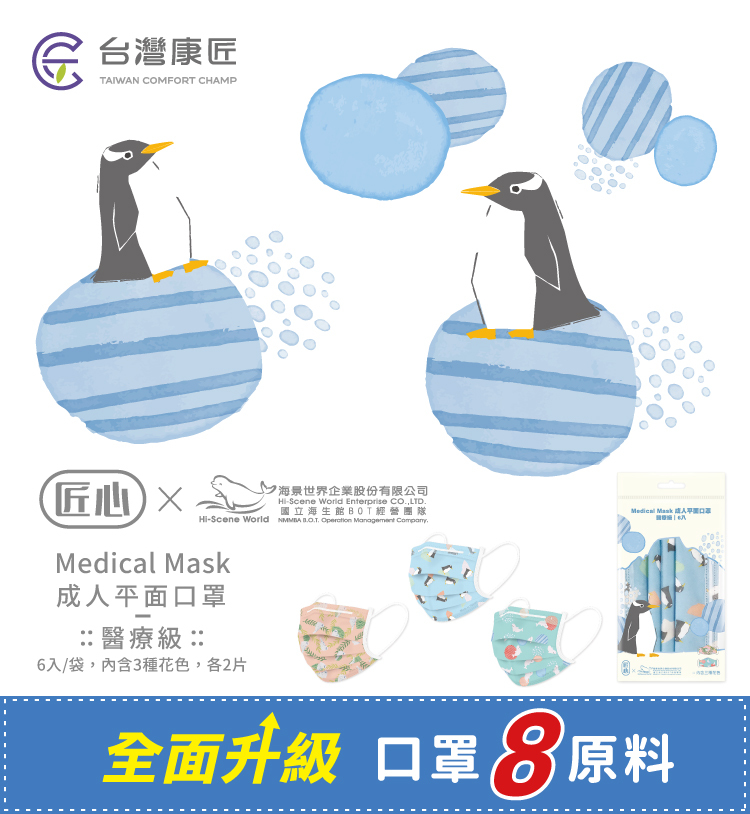 【匠心 × 海景世界】海生館三層平面醫用口罩-L尺寸(成人) 6入/袋