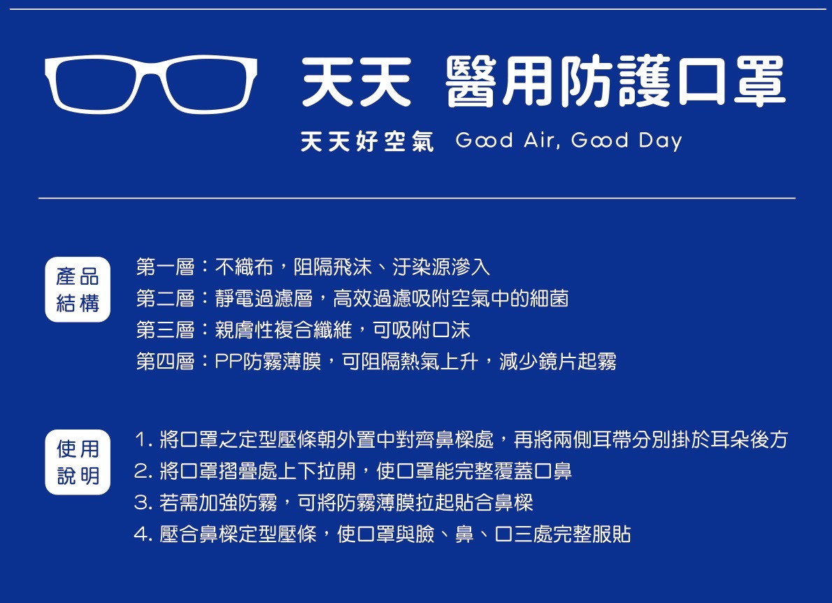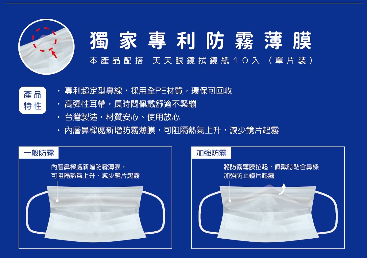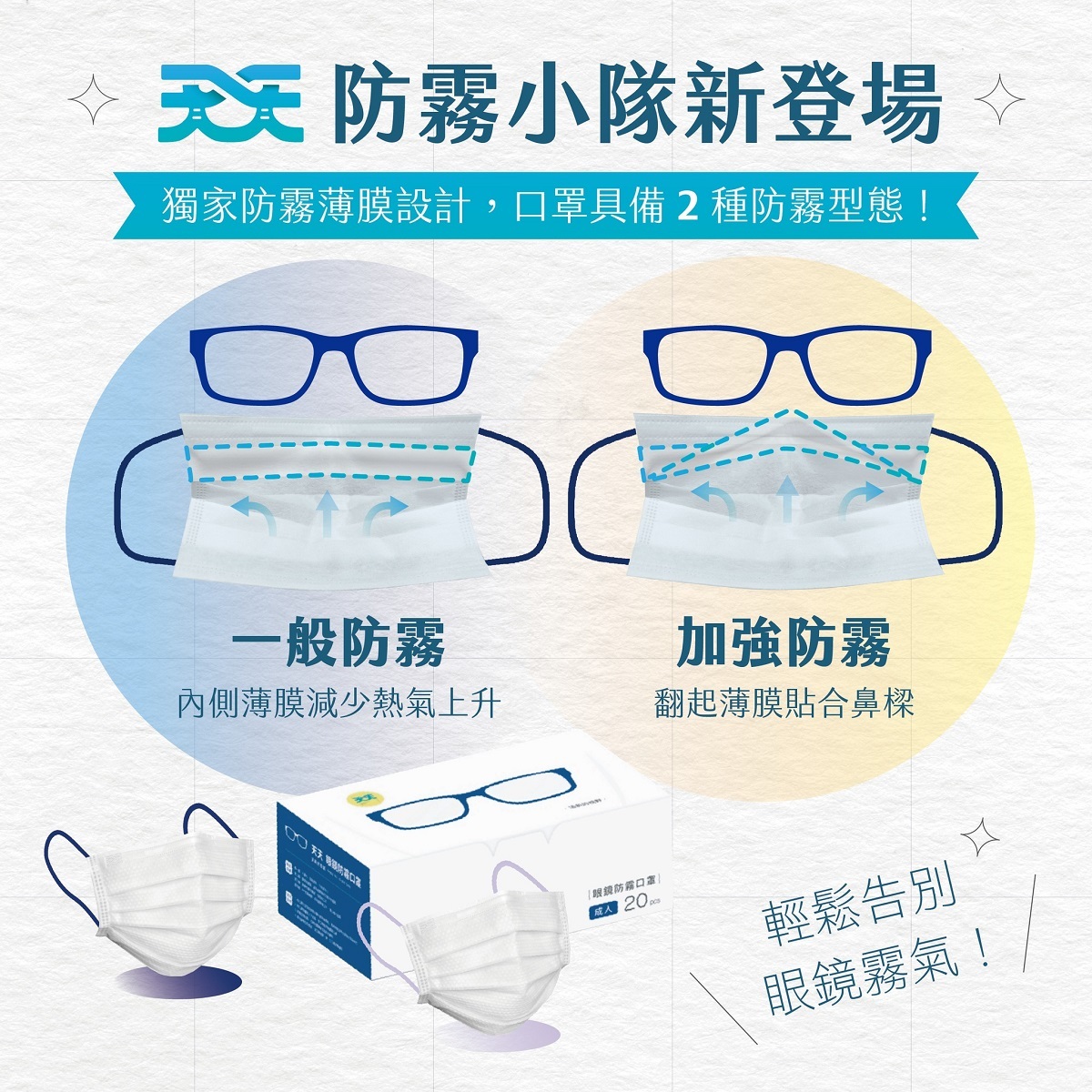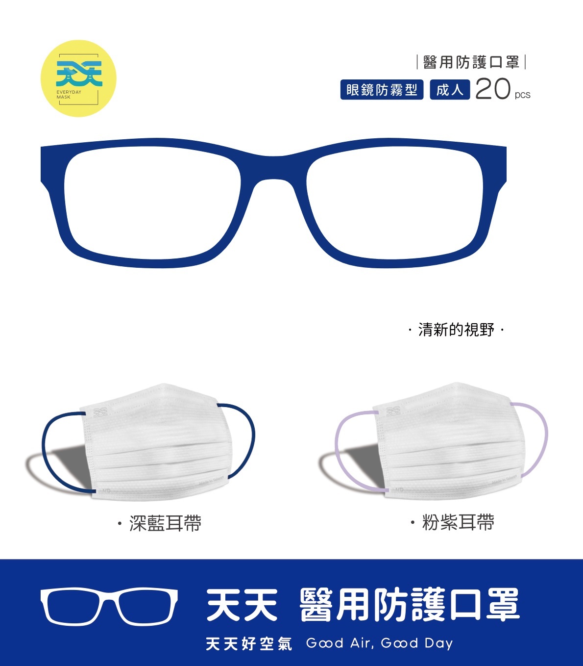 【天天-眼鏡防霧型】-成人平面醫用口罩 20入/盒