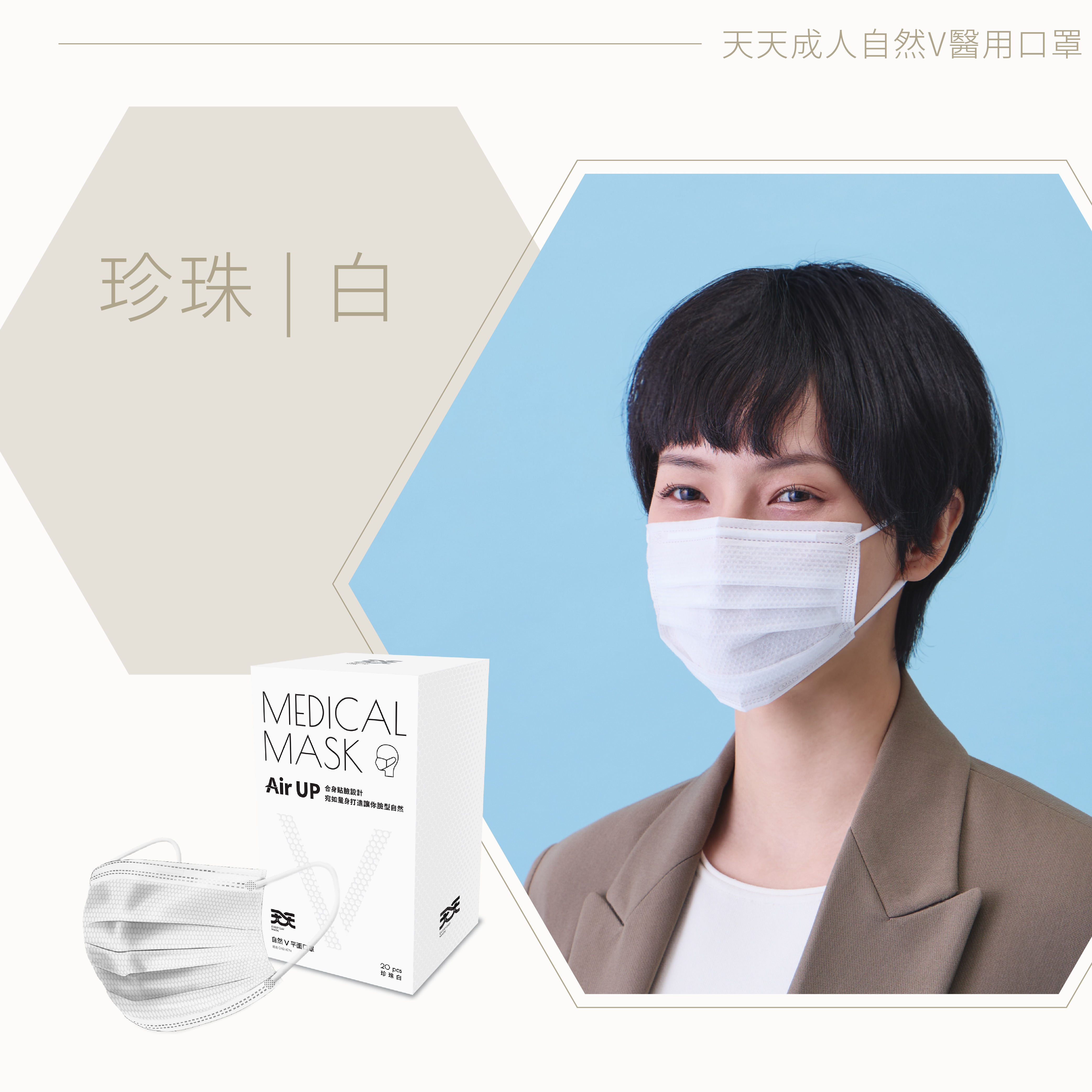 【天天】成人平面醫用口罩,自然V 珍珠白 20入/盒
